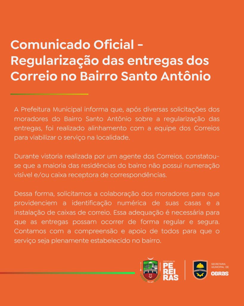 Regularização das entregas dos Correios no Bairro Santo Antônio