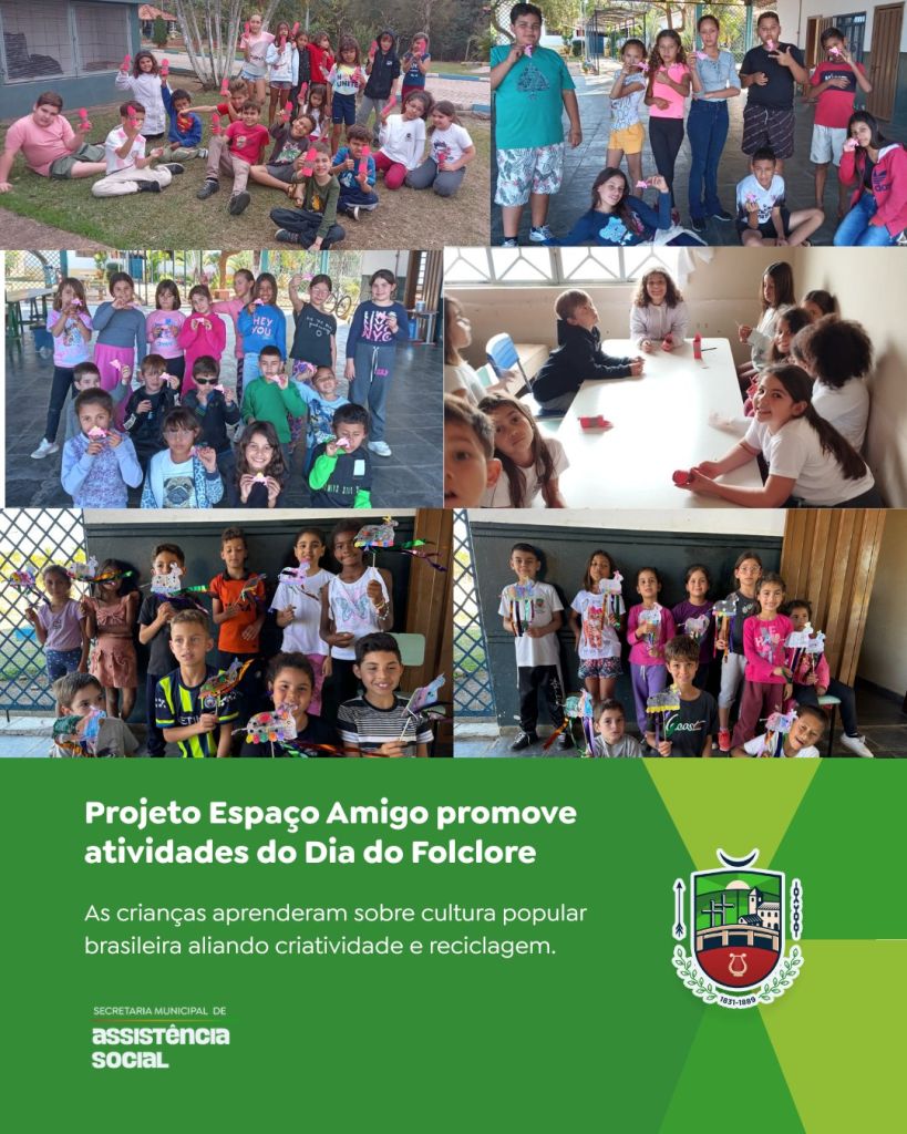 Em comemoração ao Dia do Folclore Brasileiro, as crianças do Projeto Espaço Amigo participaram de oficinas criativas, confeccionando personagens folclóricos com materiais recicláveis e resgatando tradições da nossa cultura popular.