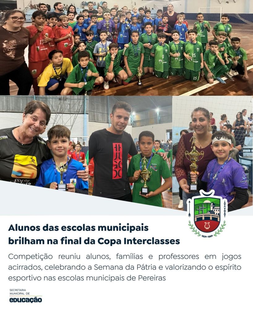 Mais do que resultados, a Copa Interclasses reforça a importância do esporte como ferramenta de integração, aprendizado e valorização da cidadania. A Prefeitura de Pereiras parabeniza todos os alunos pelo desempenho, agradece aos pais pela presença e reconhece o trabalho conjunto das Secretarias de Educação e Esporte na realização do evento.