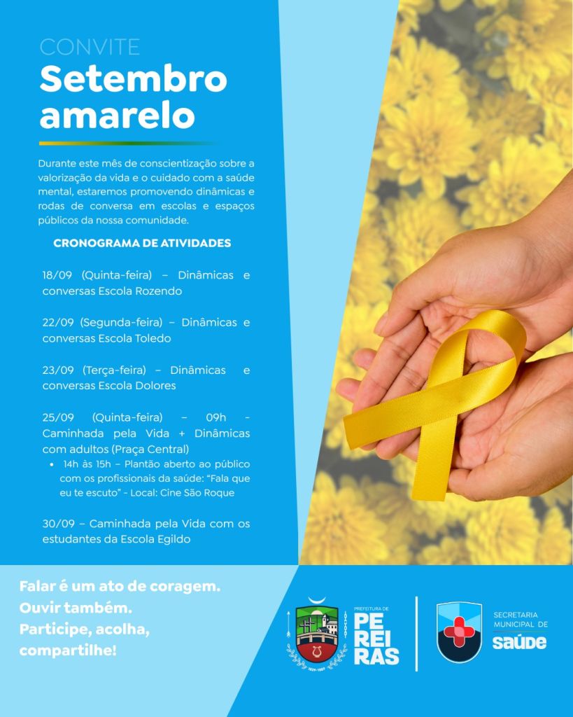Durante todo o mês, nossa cidade promove ações de conscientização sobre a valorização da vida e a importância do cuidado com a saúde mental.
