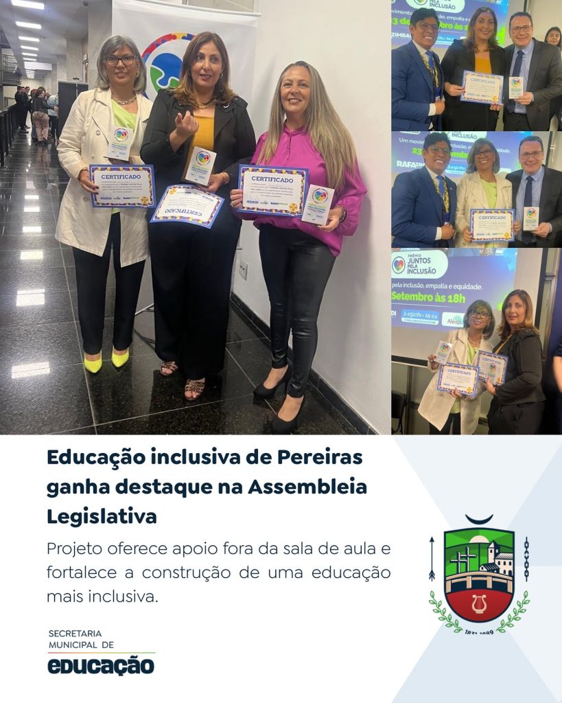 No dia 23 de setembro, o Projeto Pequeno Aprendiz recebeu uma homenagem especial na Assembleia Legislativa de São Paulo, reconhecendo o trabalho do município de Pereiras em prol da educação inclusiva.