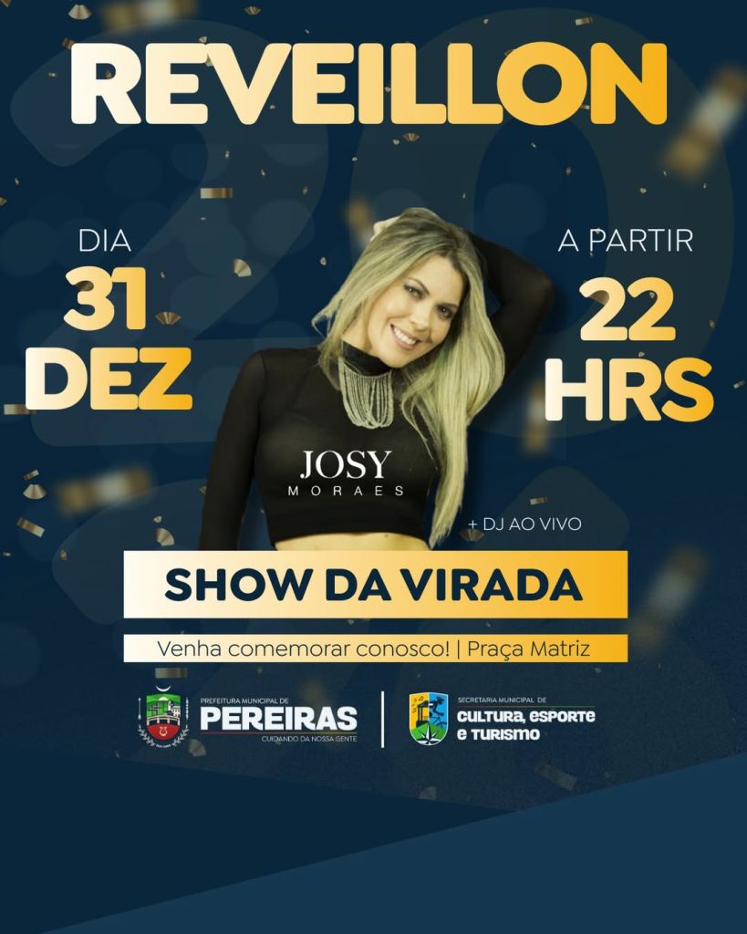 No dia 31 de dezembro, a partir das 22h, venha celebrar o Réveillon com Josy Moraes, DJ ao vivo e muita animação na Praça Matriz.