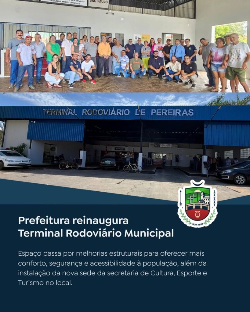 A Prefeitura Municipal realizou a reinauguração do TERMINAL RODOVIÁRIO VICE-PREFEITO CELSO PRESTES DE OLIVEIRA, que passou por melhorias estruturais voltadas a oferecer mais conforto, segurança e funcionalidade à população. Além da revitalização do espaço, o local passa a abrigar oficialmente a Secretaria Municipal de Cultura, Esporte e Turismo, ampliando o acesso da comunidade aos serviços públicos.