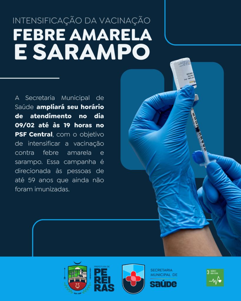 A Secretaria Municipal de Saúde realizará uma ação especial para reforçar a vacinação contra febre amarela e sarampo, ampliando o acesso da população à imunização.