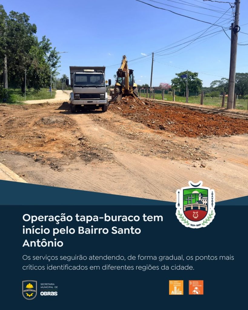 A Prefeitura de Pereiras iniciou a operação tapa-buraco no município, com os trabalhos começando pelo Bairro Santo Antônio.