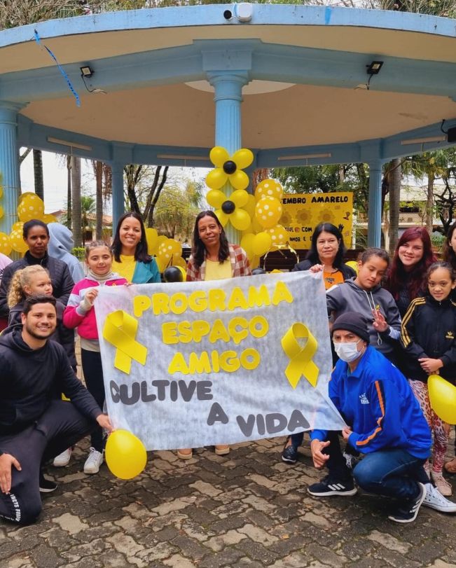 A caminhada Setembro Amarelo reuniu moradores, profissionais da saúde, da assistência social, da educação, adultos, crianças.