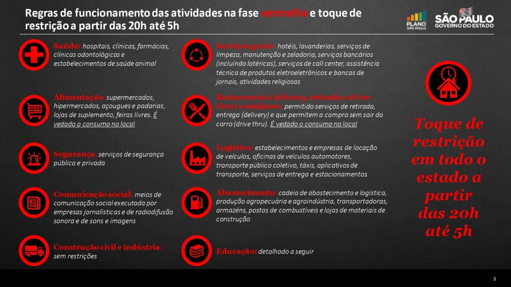 FASE VERMELHA E TOQUE DE RESTRIÇÃO A PARTIR DAS 20H ATÉ 5H