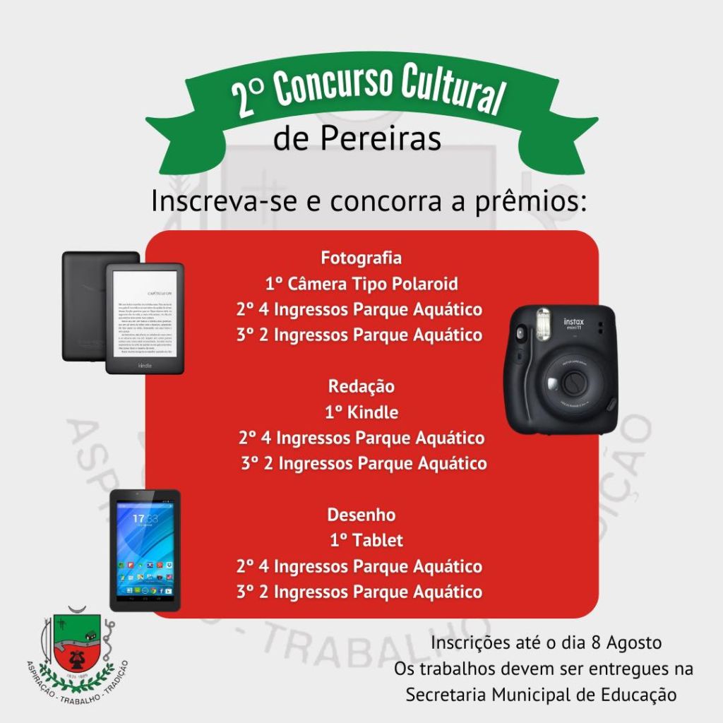 Atenção vem aí o 2º Concurso Cultural de Pereiras! Então corre para se inscrever porque a premiação está incrível!