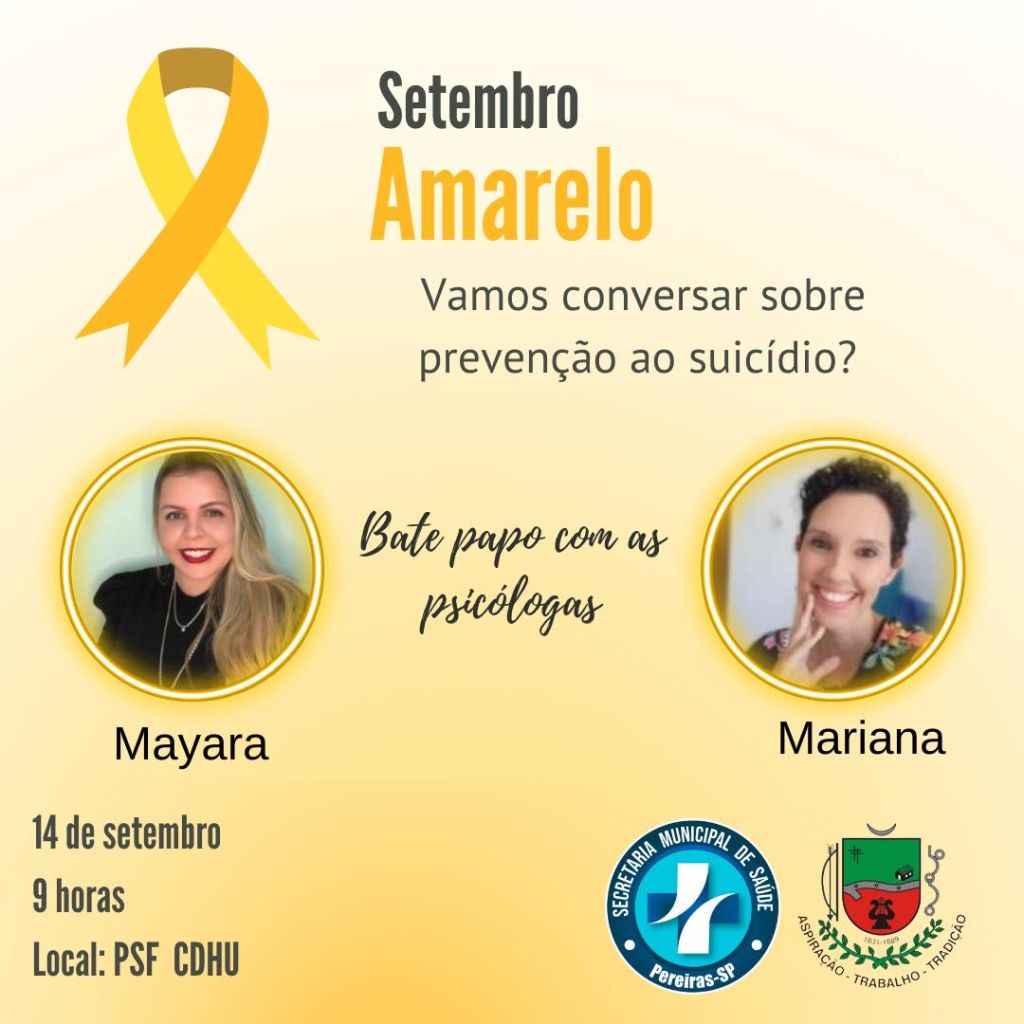 A Secretaria Municipal de Saúde, com o apoio da equipe do PSF, convida a todos para uma conversa sobre o assunto com duas psicólogas: Mayara e Mariana.