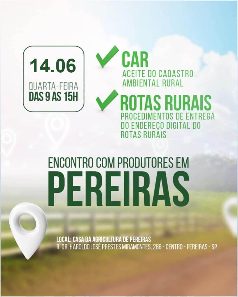 Produtor rural, participe do Mutirão do CAR e Rotas Rurais em Pereiras!