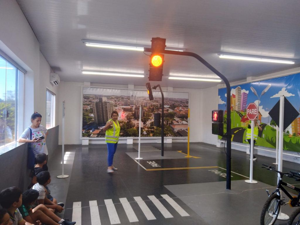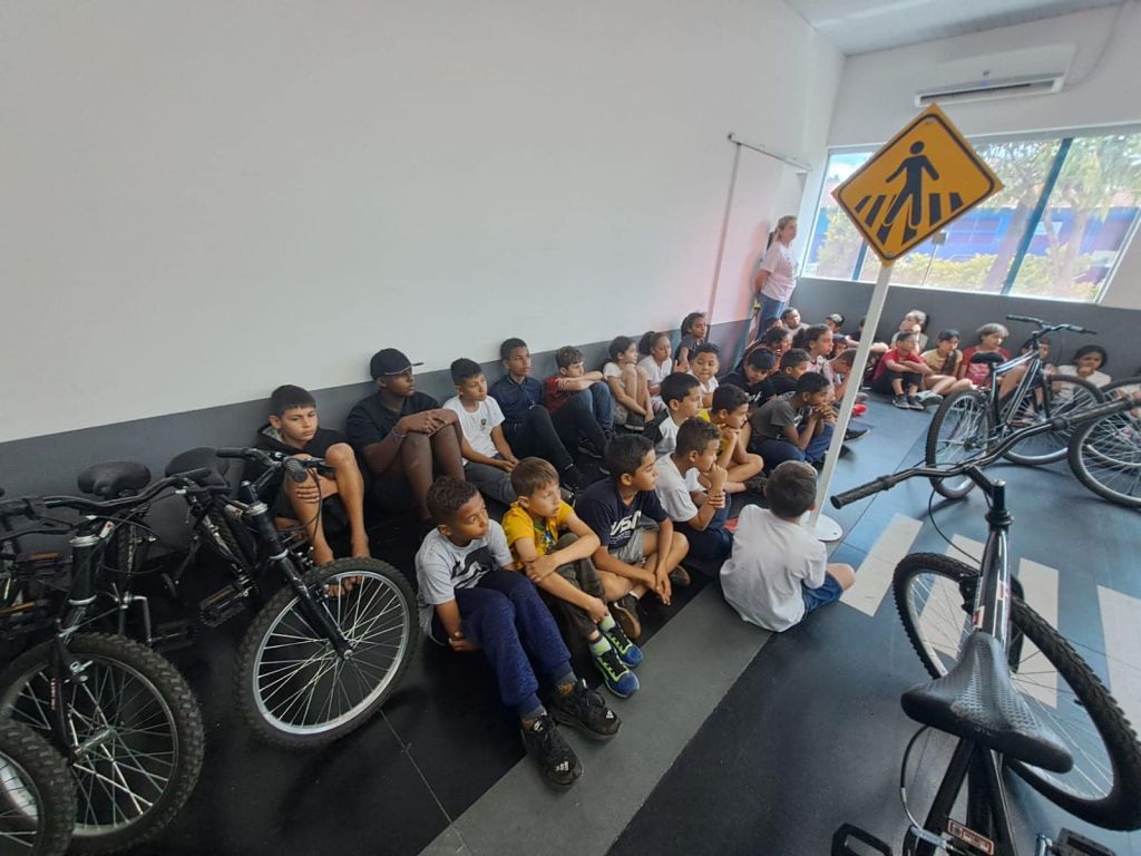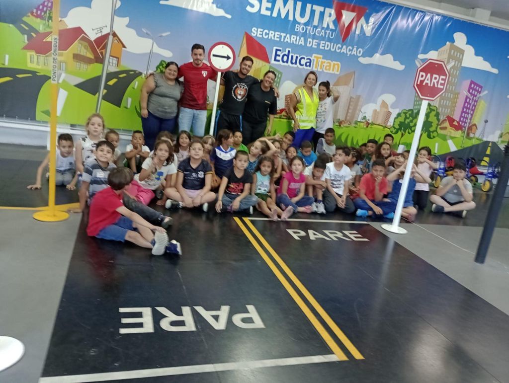 Além da parte teórica, o local oferece também a parte prática, através de um circuito de trânsito que recria uma "minicidade", com sinalização em tamanho real, onde os alunos se divertiram muito vivenciando essa aula prática.