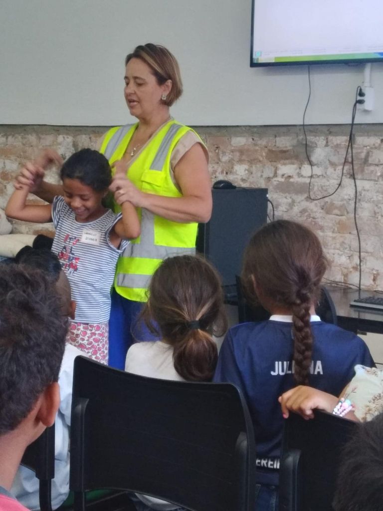 As crianças puderam, por meio de palestras sobre as normas e posicionamentos no trânsito, aprender um pouco mais sobre a importância da segurança de pedestres e motoristas.