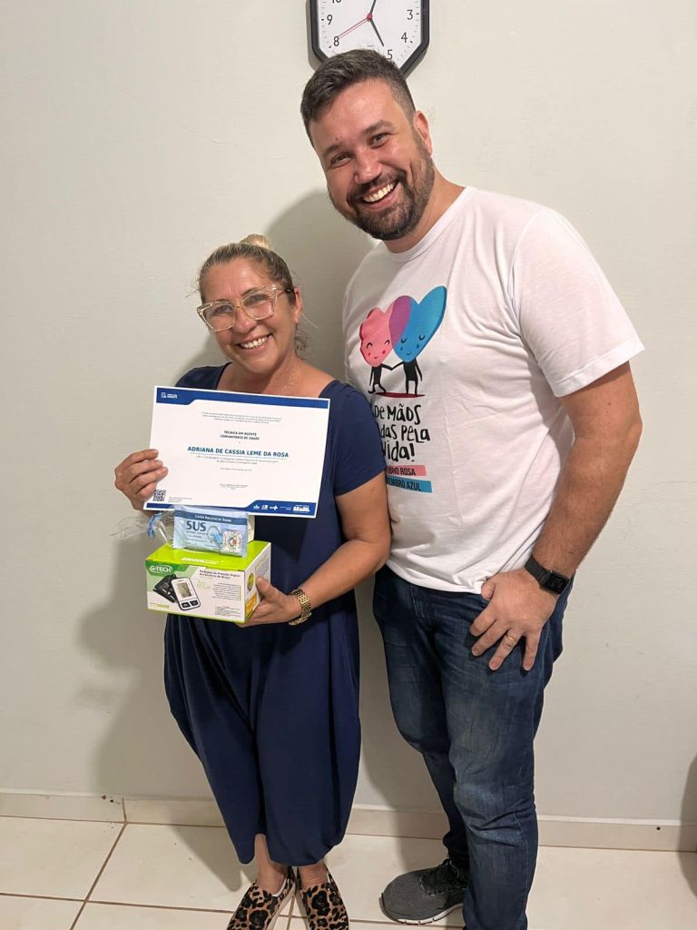 Na oportunidade, o secretário Gregório Pololi fez a entrega simbólica dos diplomas para os agentes do nosso município que finalizaram o curso Técnico em Agentes de Saúde “SAÚDE COM AGENTE”.
