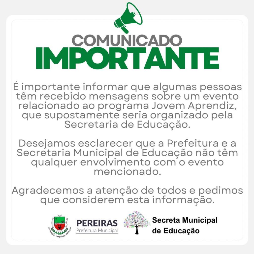 A Prefeitura e a Secretaria Municipal de Educação negam envolvimento com qualquer evento relacionado ao Programa Jovem aprendiz