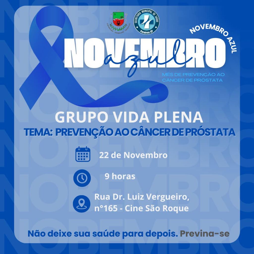No dia 22 de Novembro, o grupo vida Plena com o tema: Prevenção ao câncer de Próstata.