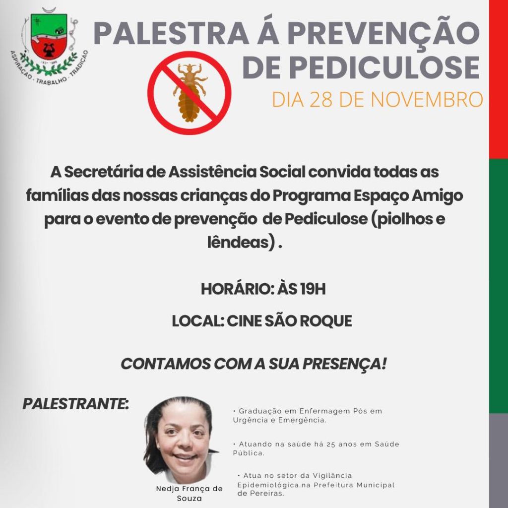 Nessa terça-feira (28/11), ocorrerá a palestra sobre prevenção de Pediculose.