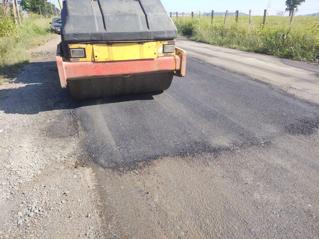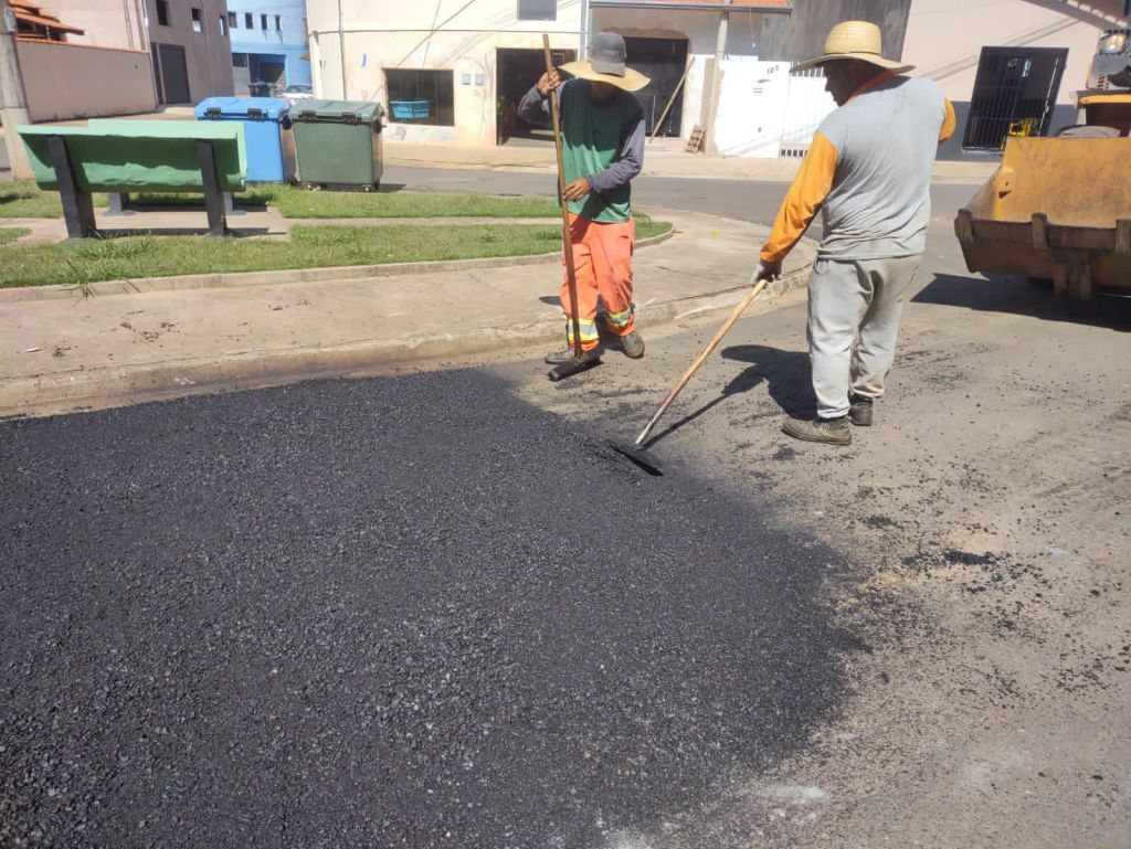 A equipe do Almoxarifado está a todo vapor na operação tapa-buraco nos bairros Centro, São Benedito e Estação de Pereiras.