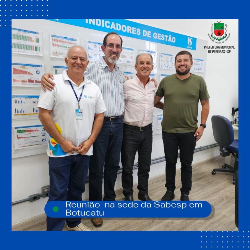 Começamos a semana com uma reunião na SABESP BOTUCATU, onde o Prefeito Miguel Tomazela, acompanhado de seu Vice, Osmarzinho, e o Sr. César encarregado da agência da Sabesp de Pereiras, foram recebidos pelo superintendente o Sr. Mauricio Tapia.