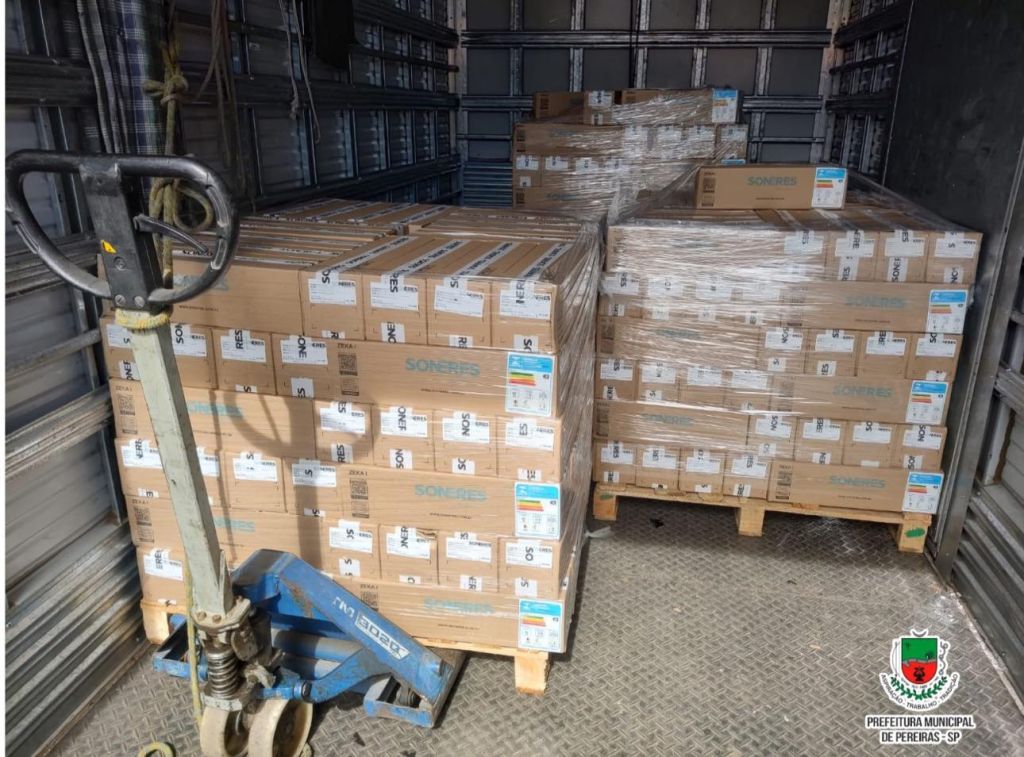 Um novo carregamento de lâmpadas de LED chegou ao nosso município. No total, recebemos 377 lâmpadas das mais de 750 que serão instaladas em todo município.