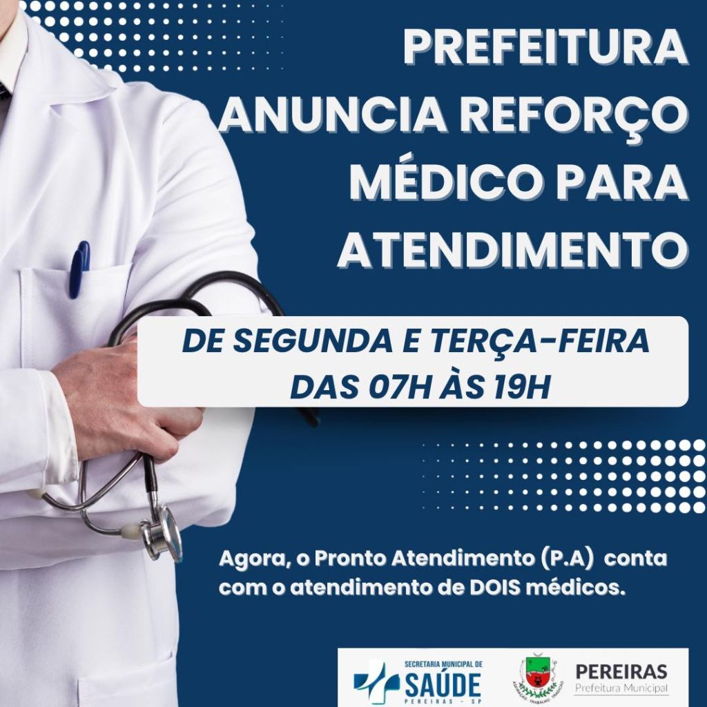 Desde o dia 03 de junho, reforçamos o atendimento com dois médicos de plantão nas segundas e terças-feiras, das 07h às 19h, para garantir um serviço mais eficiente e rápido em dias de maior demanda. Continuamos priorizando a Saúde, sempre em busca do melhor para nossa população!