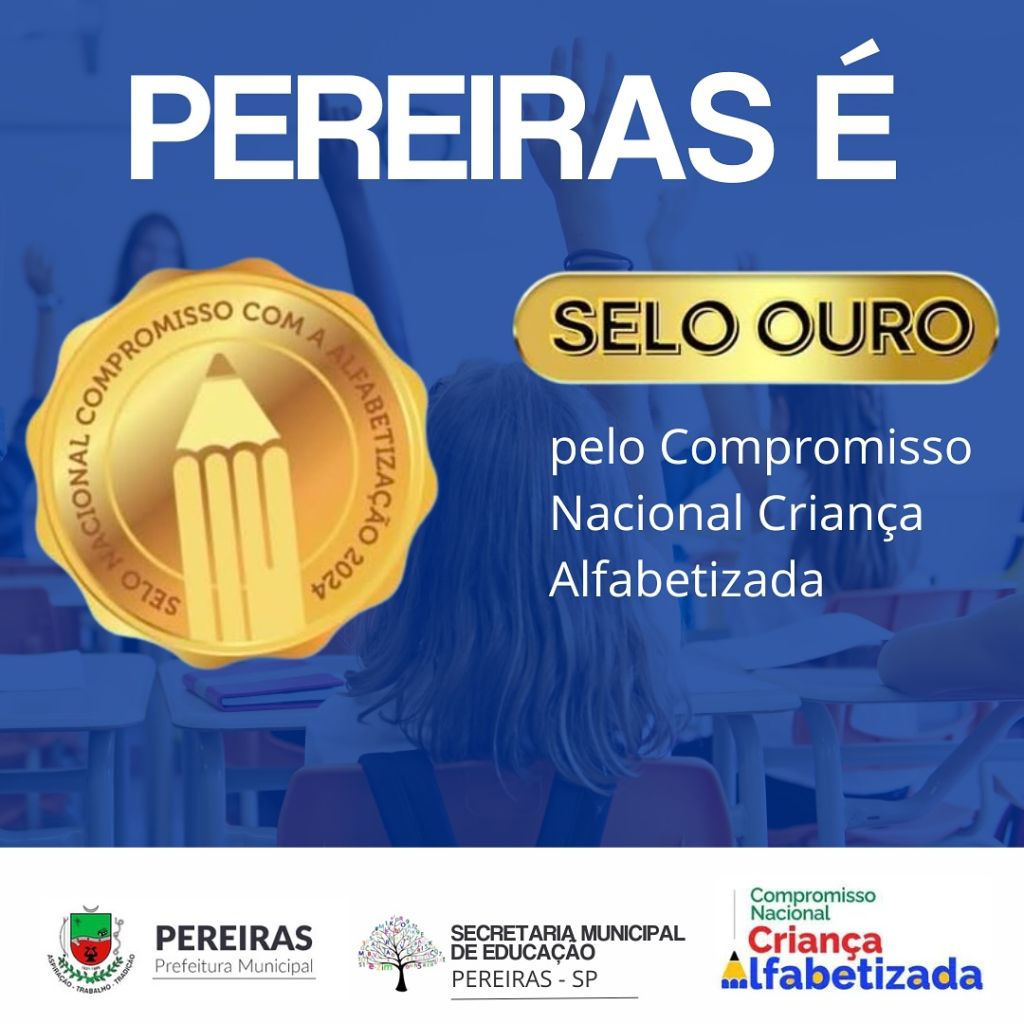 Pereiras recebeu o SELO OURO referente ao programa Compromisso Nacional Criança Alfabetizada.