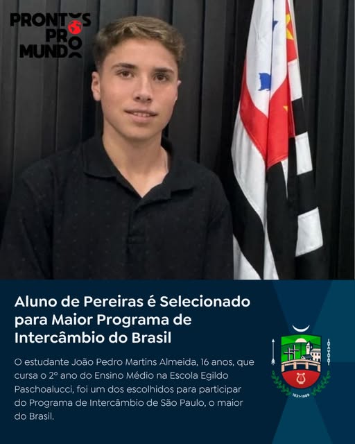 Uma conquista que enche Pereiras de orgulho! Parabéns, João Pedro! Que essa experiência transforme seu futuro e inspire muitos outros jovens!