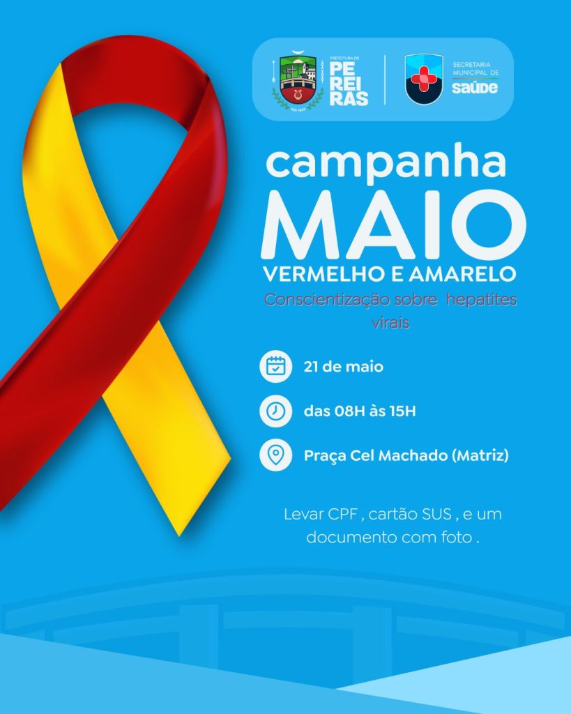 No dia 21 de maio, esperamos você na Praça Central, das 08h às 15h, para uma ação especial de conscientização hepatites virais.