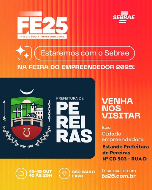 A Prefeitura de Pereiras participa da Feira do Empreendedor do Sebrae, um dos principais eventos de negócios e capacitação do Brasil.