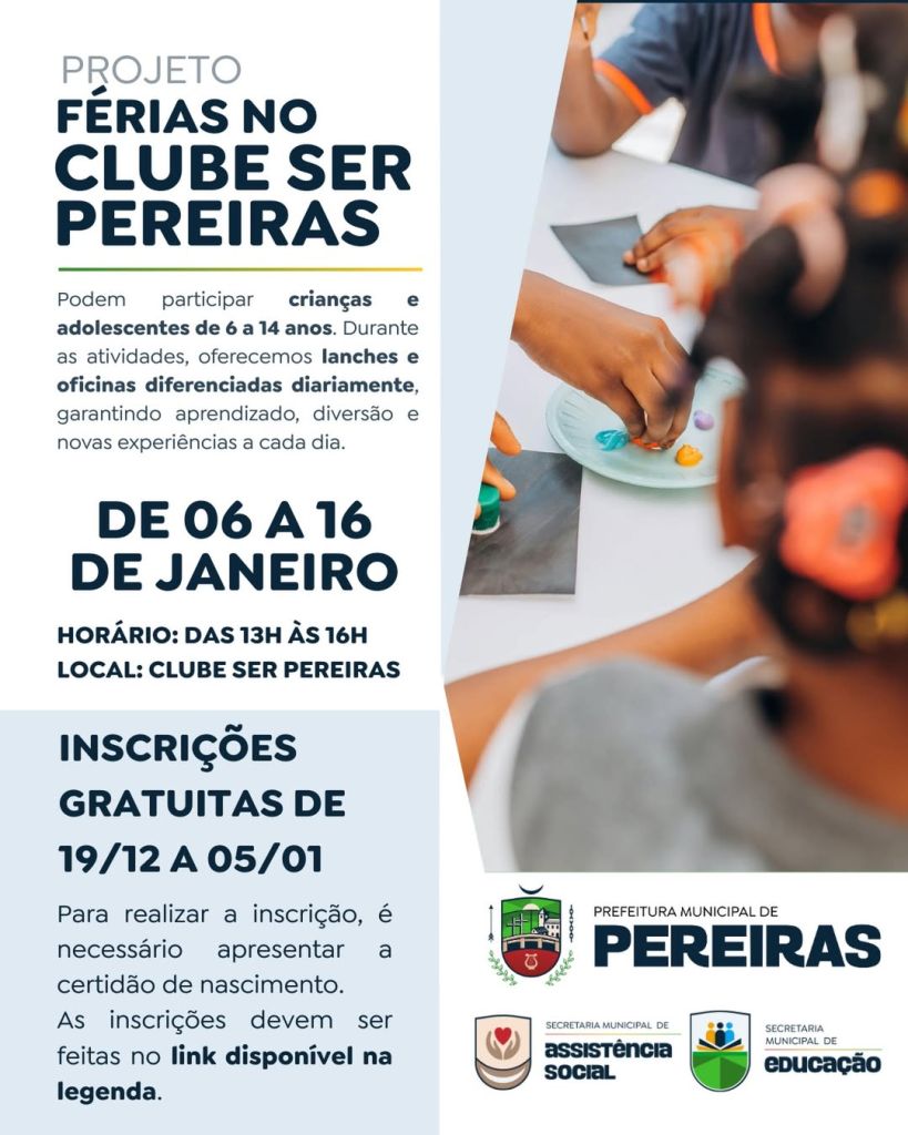 De 06 a 16 de janeiro, o Clube Serpereiras recebe oficinas diferenciadas todos os dias, além de lanches e atividades pensadas para estimular a criatividade e a convivência.