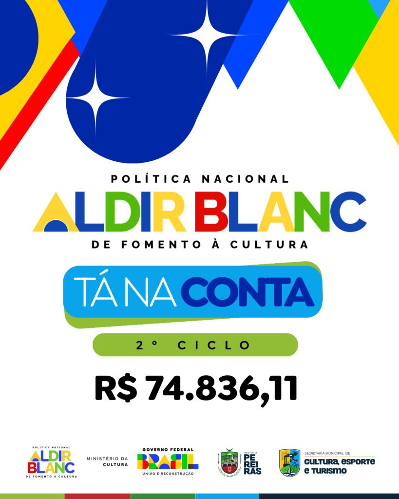 A Prefeitura de Pereiras, por meio da Secretaria Municipal de Cultura, informa que o município recebeu o segundo repasse da Política Nacional Aldir Blanc de Fomento à Cultura (PNAB).